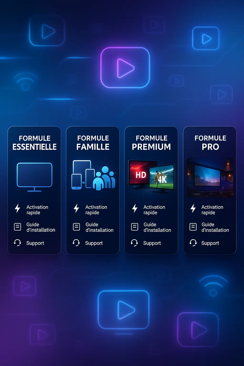 Une offre IPTV qui centralise chaînes, VOD et replay en un seul abonnement, accessible sur la plupart des appareils connectés.